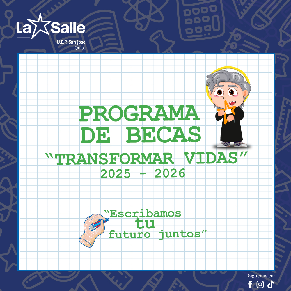 Unidad Educativa Particular San José La Salle, un lugar donde la formación humana y cristiana de nuestros estudiantes junto con las familias es nuestra principal misión. En este espacio, nos esforzamos por cultivar valores, pues sabemos que la educación es la base para transformar vidas.